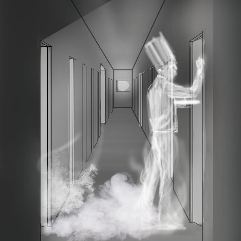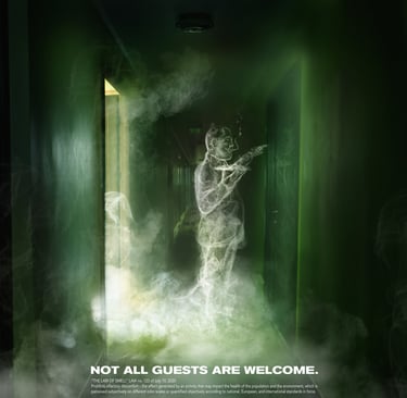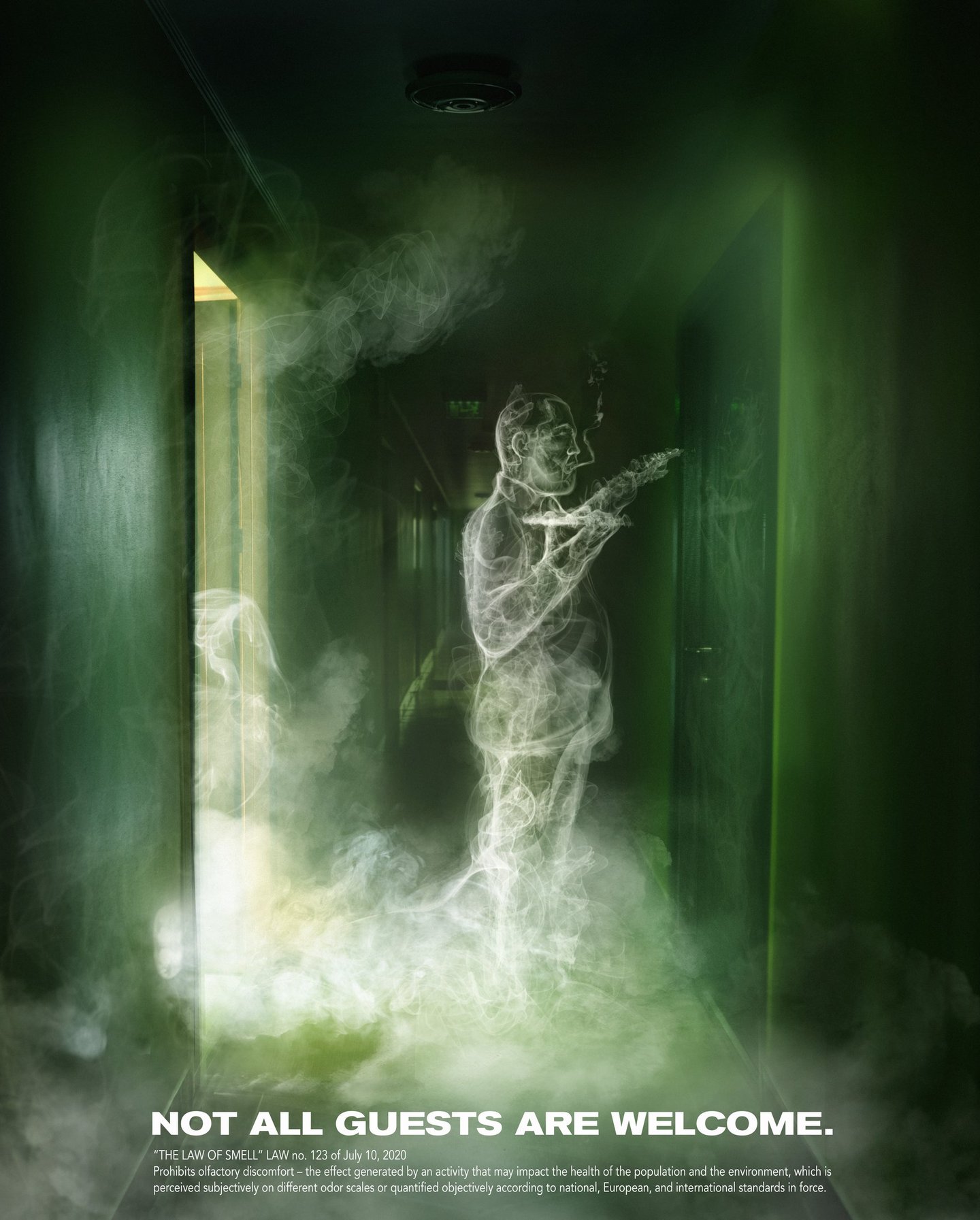 Everyone hates a smelly place . so there are laws that prohibit eliminating personal odours in mutual open spaces. this was my take on the subject, imagining the usual smell of block apartments hallways .