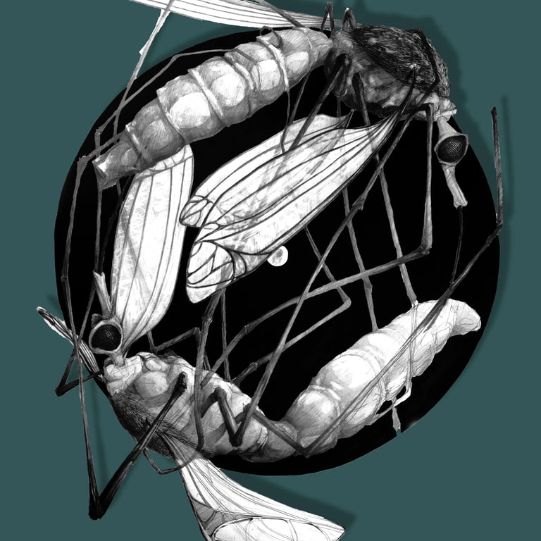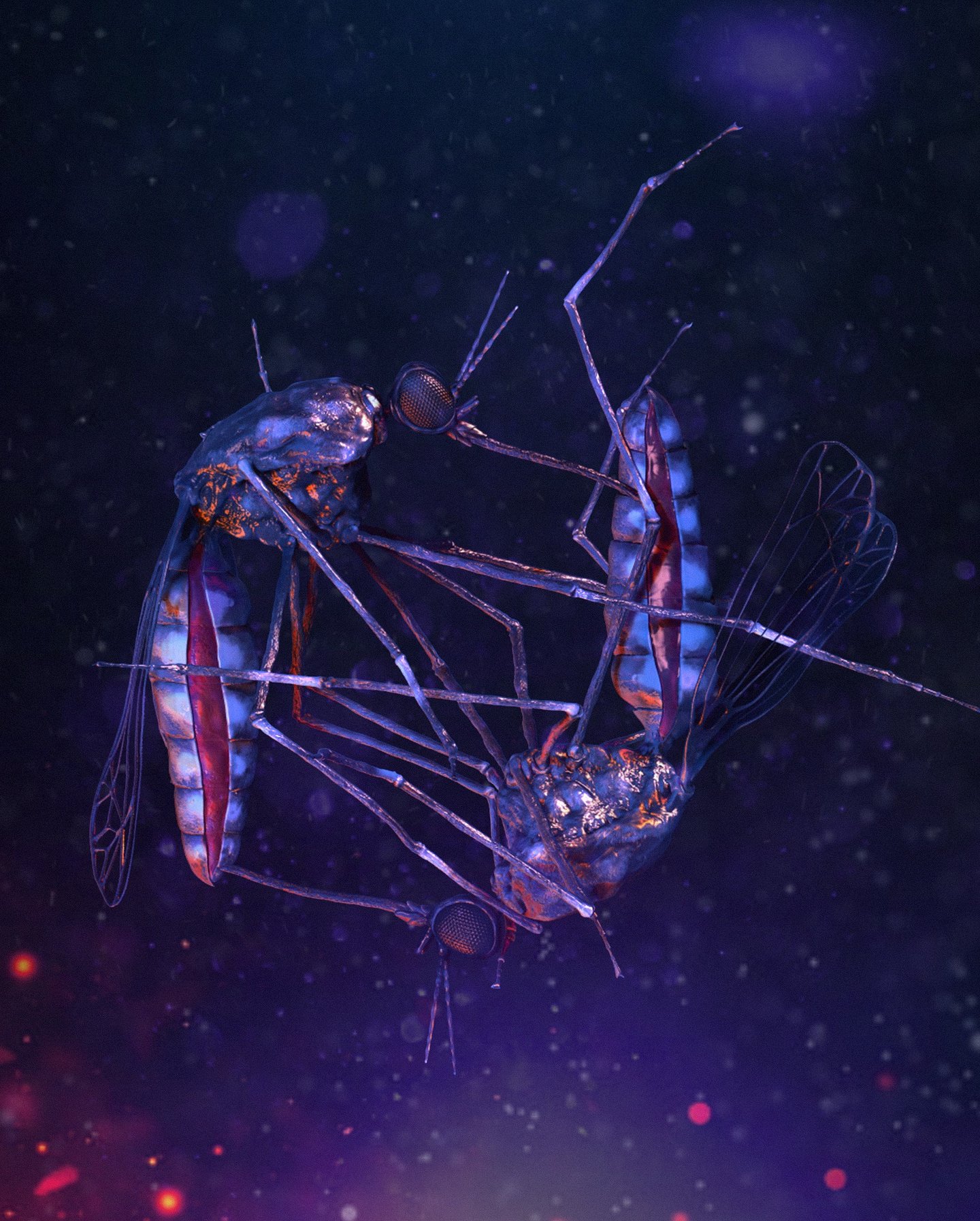 this project started as a sketch i did for my Ba degree and after years and years i decided to give it another life as a cgi render. so i modeled the mosquitoes and post-produced it in photoshop .