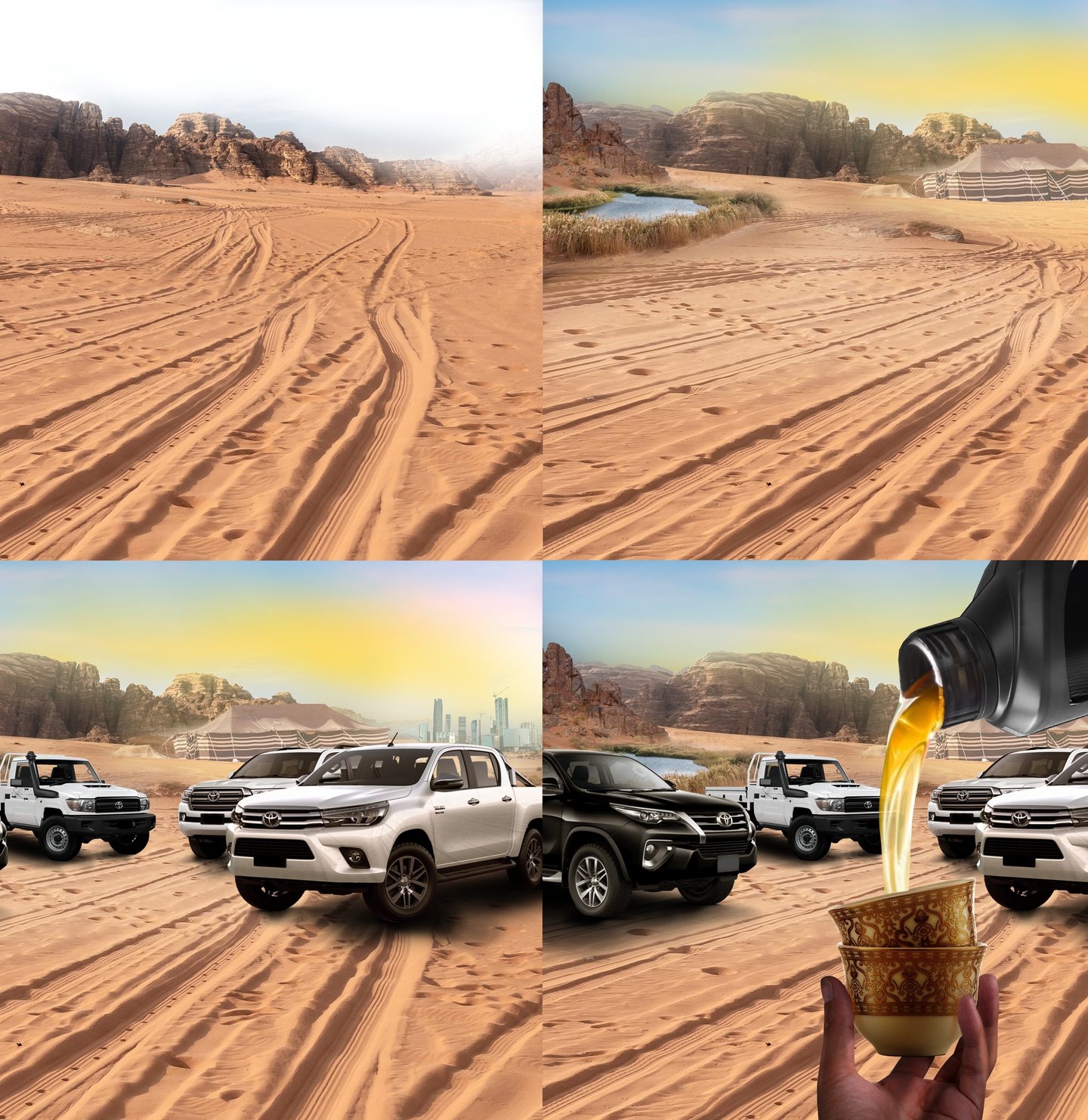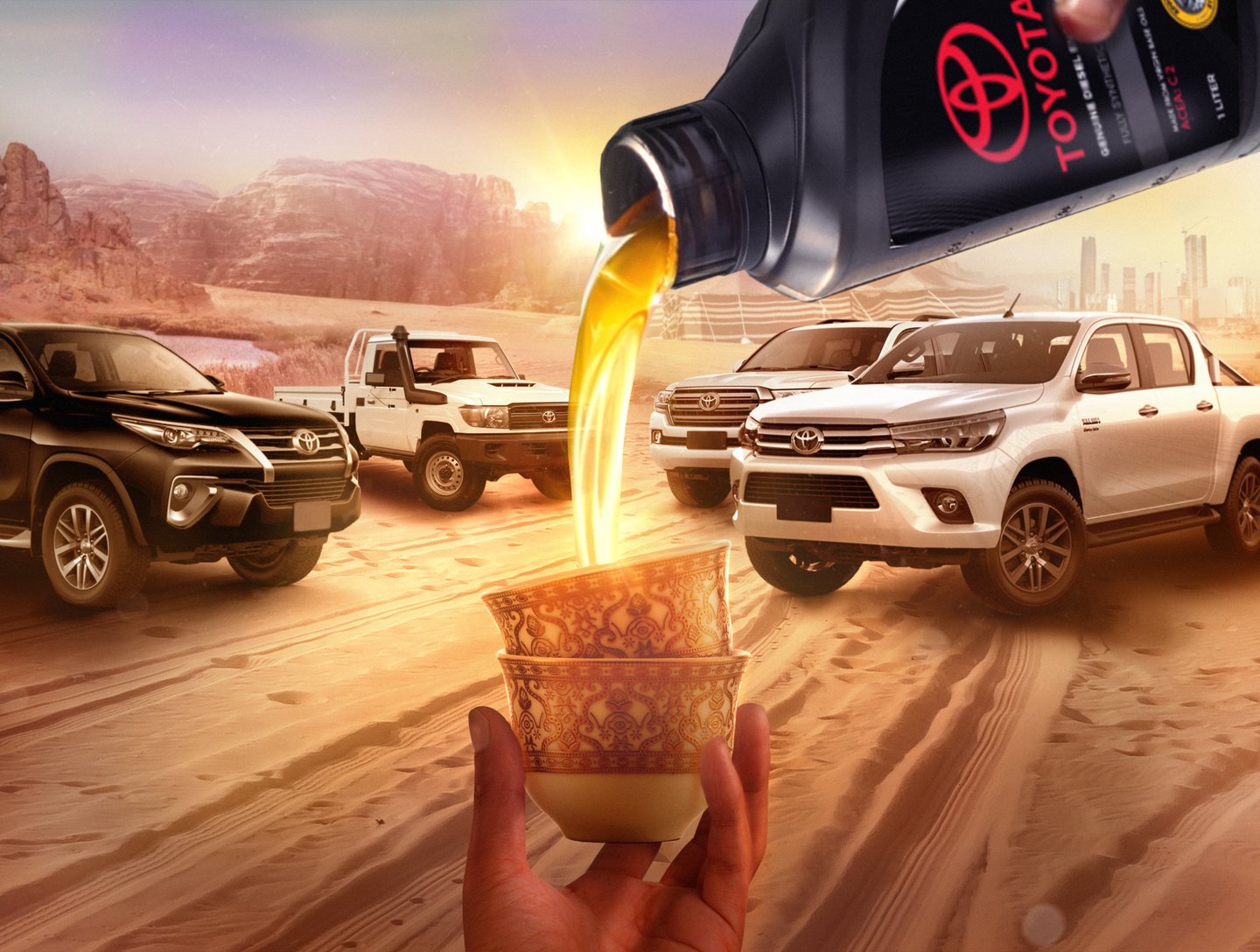I had to make art direction drafts for toyota oils KSA and had the objective to emphasize the fact that engine oils are a really important part of car mentainance.